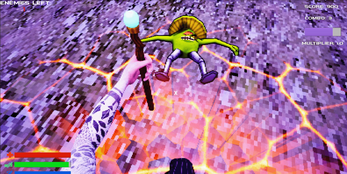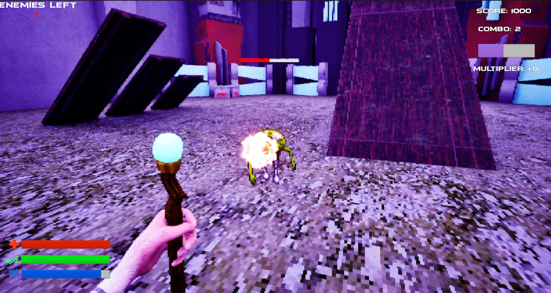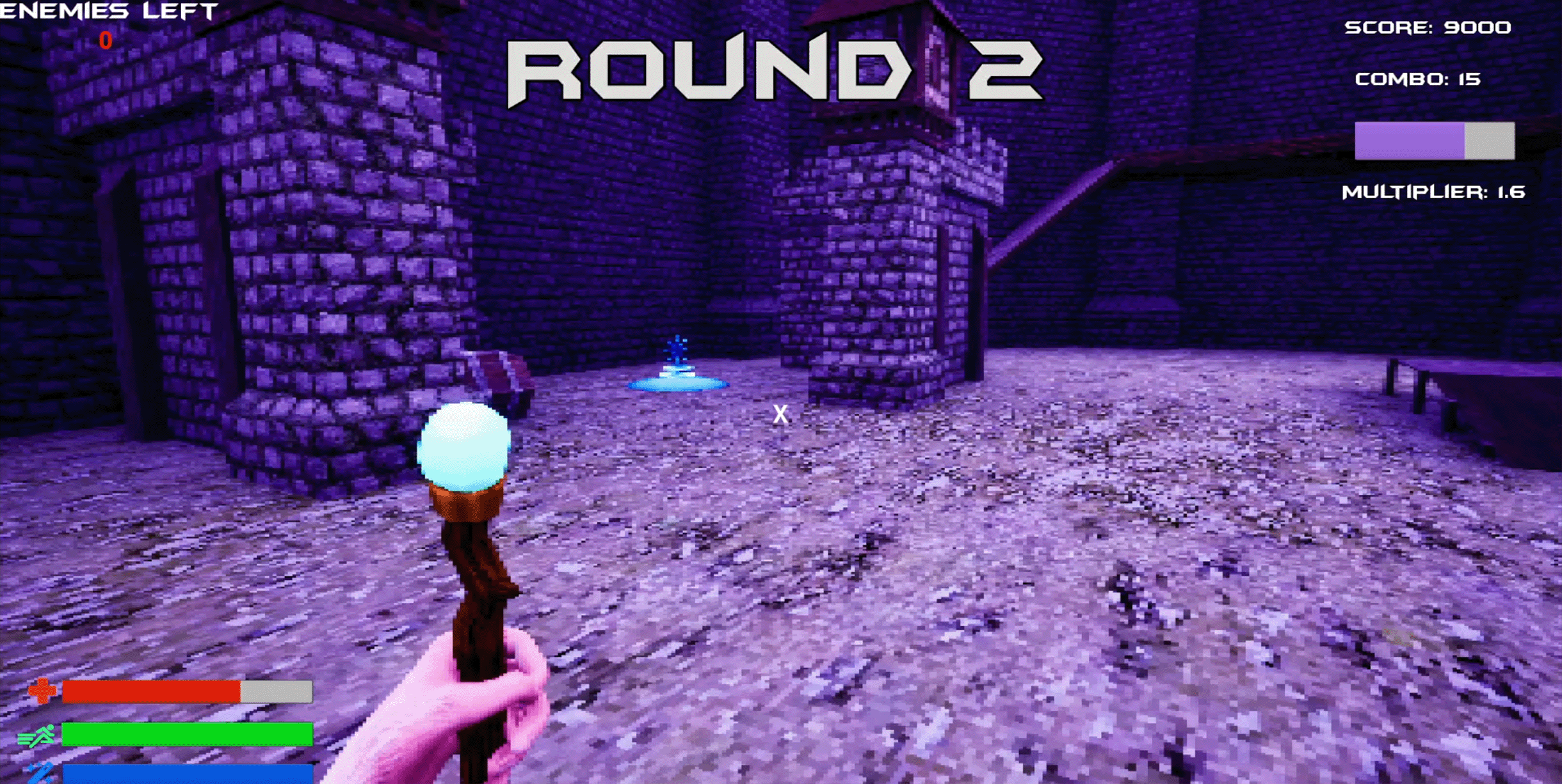 Realities have collided. At the centre of this rift sits a medieval sci-fi arena where enemies are spawning with features from each realm. Become the wizard fighter in this first-person shooter and defeat foes to rack up the highest score!