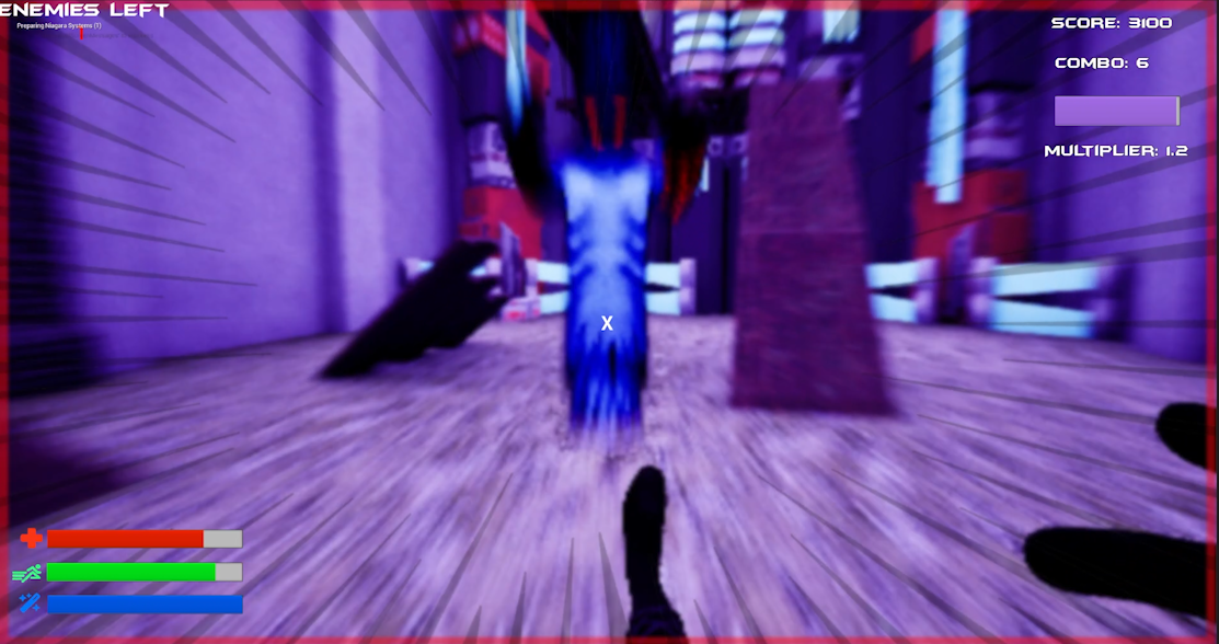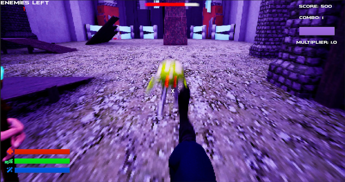 This was a collaborative project done by game designers and artists for an 'arcade' style game brief. All of the visuals (excluding a VFX pack and Mixamo main character model) are made by the two artists on the team. No AI was used in the creation of this project.